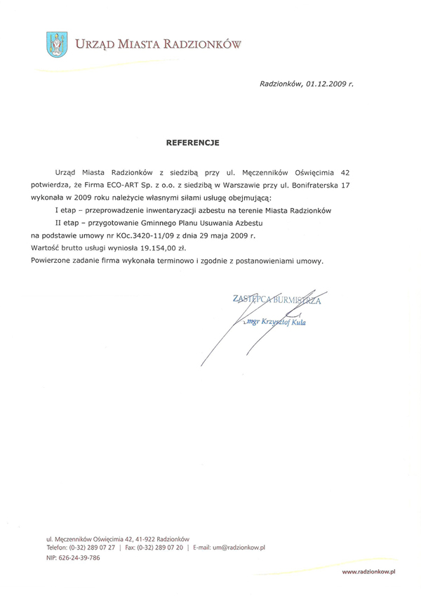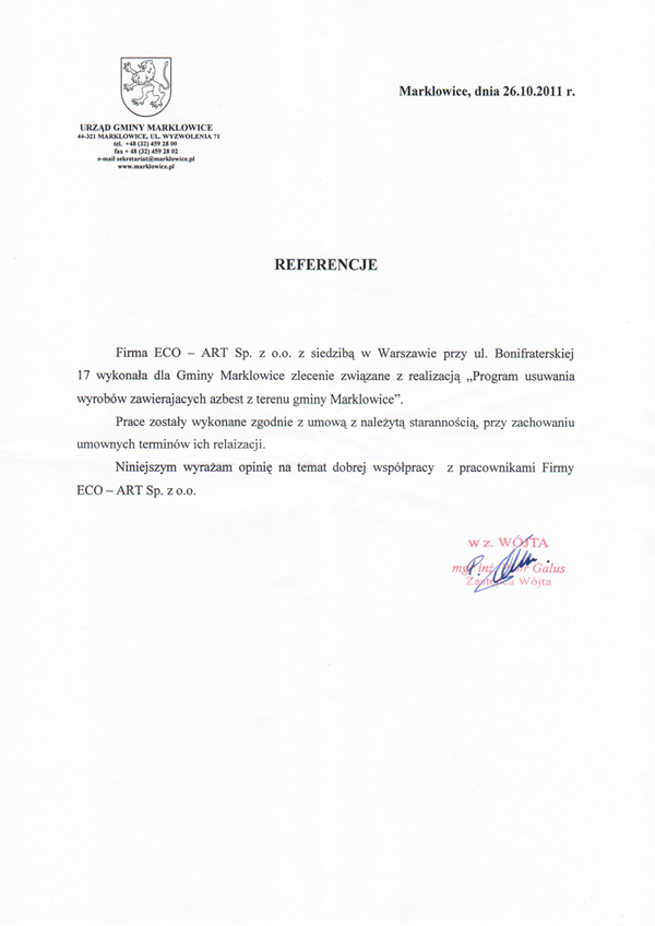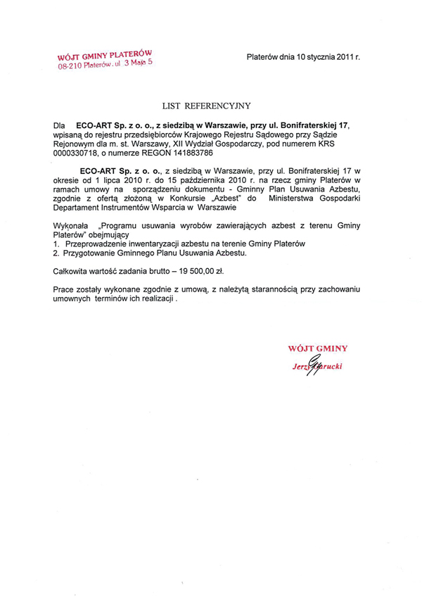 Grono naszych klientów jest szerokie, największą grupę stanowią  urzędy gmin i miast. Z naszymi klientami staramy się budować  długotrwałe relacje. Wysoka jakość naszych usług wynika z wdrożenia międzynarodowych standardów określających procedury naszego działania i współpracy. Profesjonalna wiedza połączona z terminową realizacją projektów przekłada się na satysfakcję i zaufanie naszych klientów, czego wyrazem są załączone przykładowe referencje.